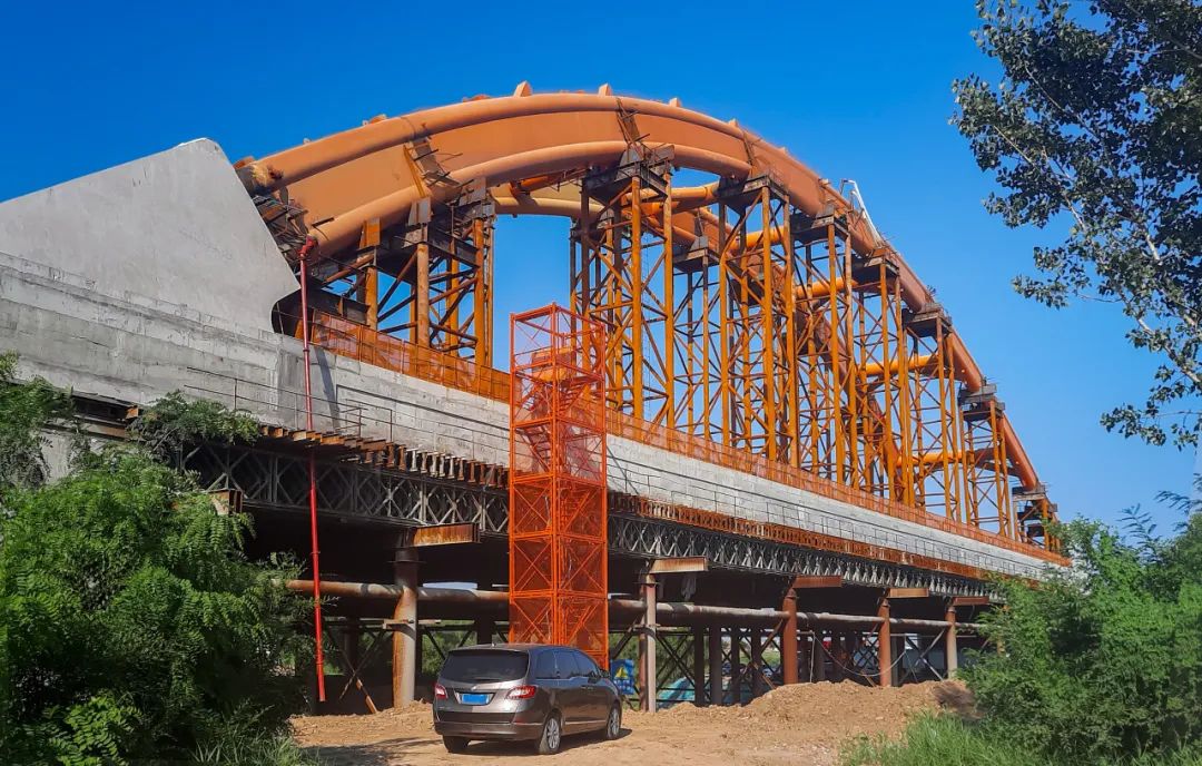 克日,跨捷地碱河特大桥主体钢构顺遂落成。跨捷地碱河特大桥全长131米,为下承式有砟轨道双线简支拱高速铁路桥,首要承重布局为提篮式钢管拱肋及尼尔森吊杆系统,拱肋用七百余吨重型钢布局件及一切吊杆用钢缆,均由巨力索具股分无限公司制作,装置。