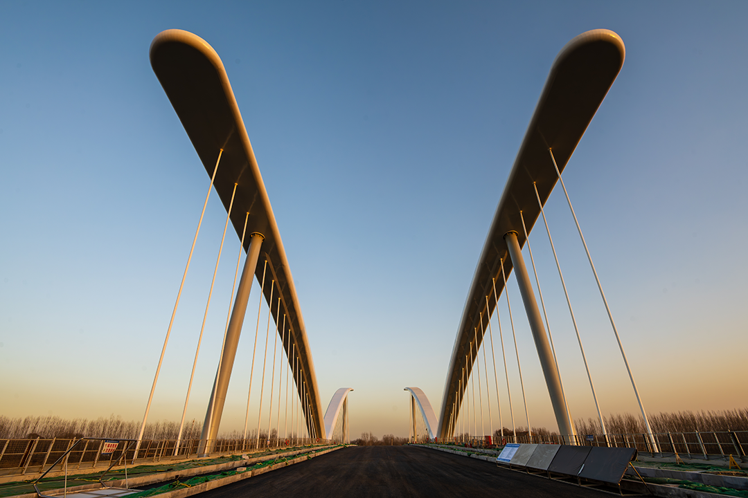 白沟引河留通桥最靠近白沟引河入淀口,是入淀出口处的常见分支,此外是白沟引河入烧车淀中部遍区的代表作品。高架桥总长259米,长宽高以鹭鸶渡水时伸展的圣翼为类似的,取展翅遨翔,高飞于空的意象,将人文风情核心价值融会于雄安湾农业生态本身的景色中。以“展翅高飞”为景色内容,阐述全部调和剂、省级重点鼓起的夜間城市灯光最后,营造“水润、洁白、汉朝、低调“的夜間桥梁结构施工景色抽象概念。桥梁结构施工全部有功较采光和可等级合理的景色采光,为常日和节日图片提供给差另外的采光最后。