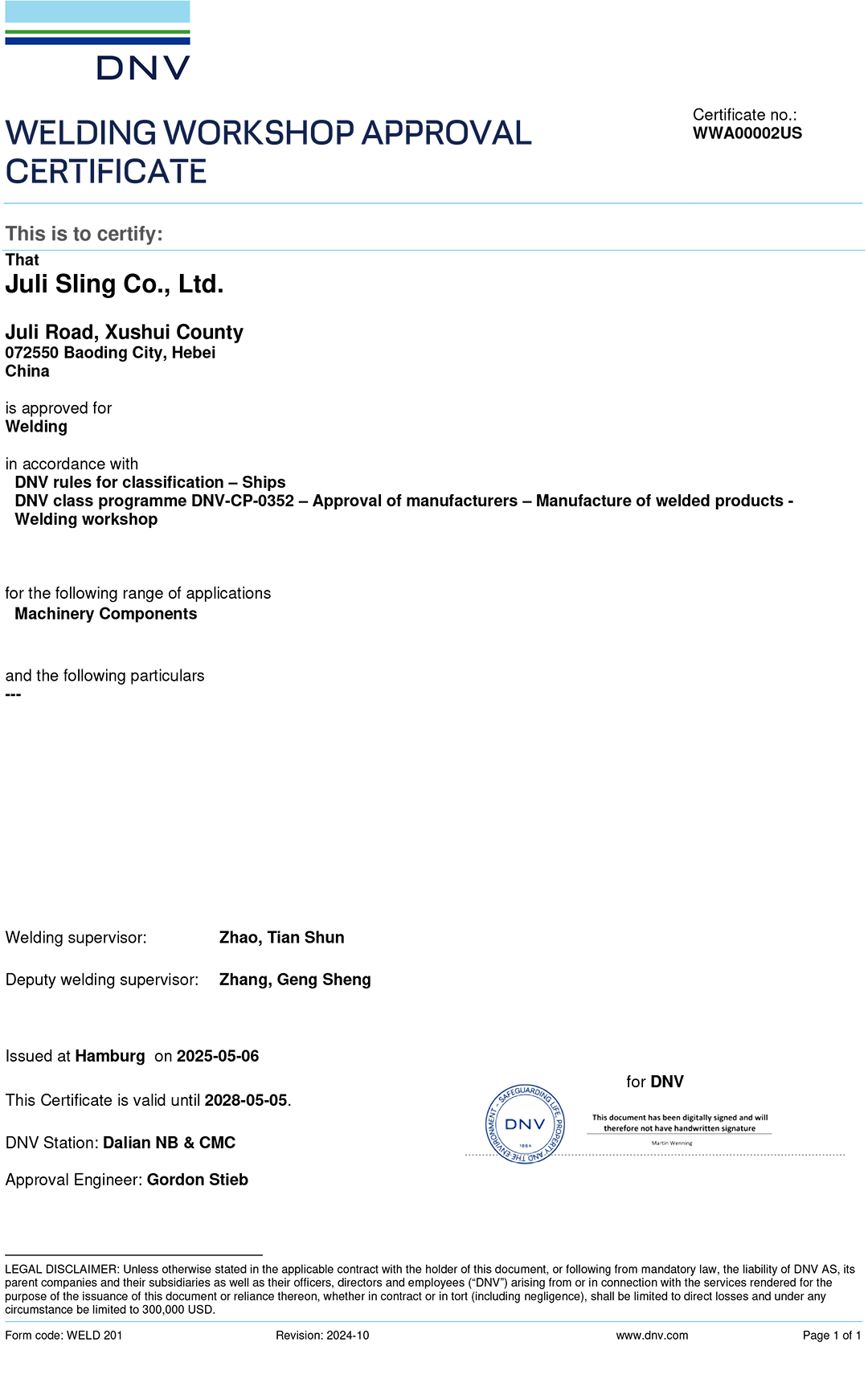 捷报!巨力索具斩获DNV焊接工场承认证书!