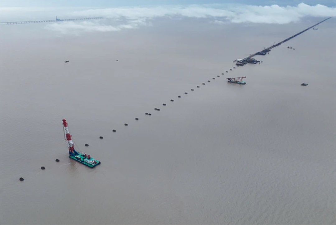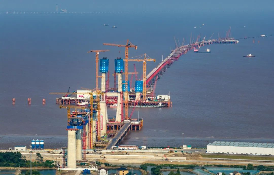 目前我国高铁新城跨海桥梁施工做活儿达到新超过