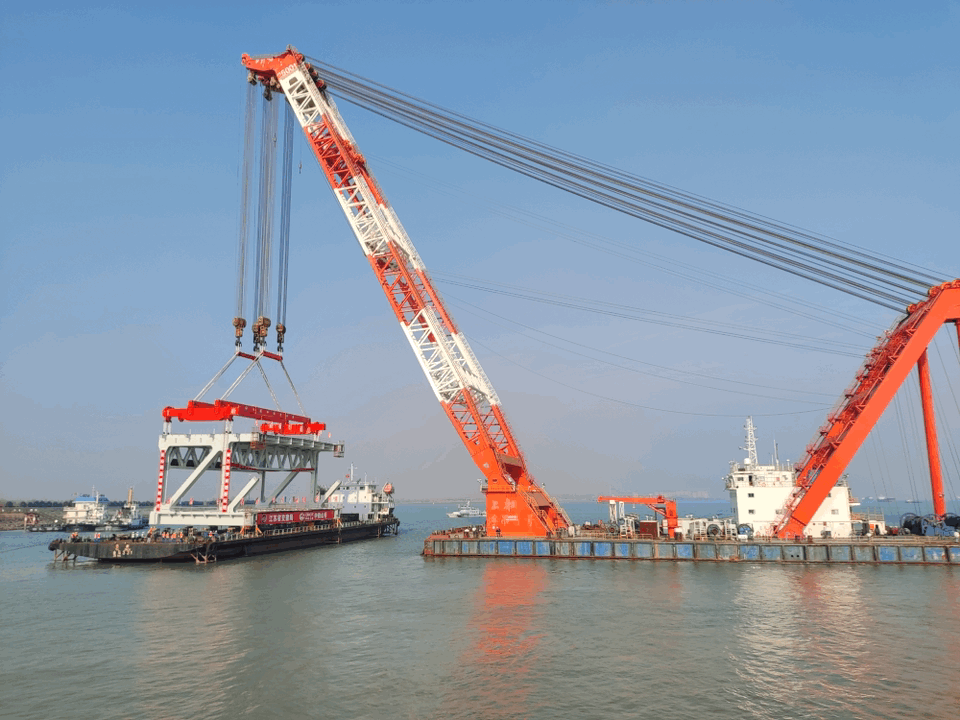 2025年4月,江大桥主河道桥首条1280吨的钢梁需到地面的与下边梁段完成任务厘米级接入,巨力索具1900吨小节段钢梁吊具全线确认该理由吊梁顺遂已停。
