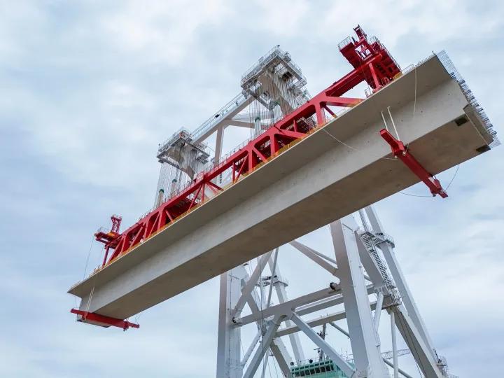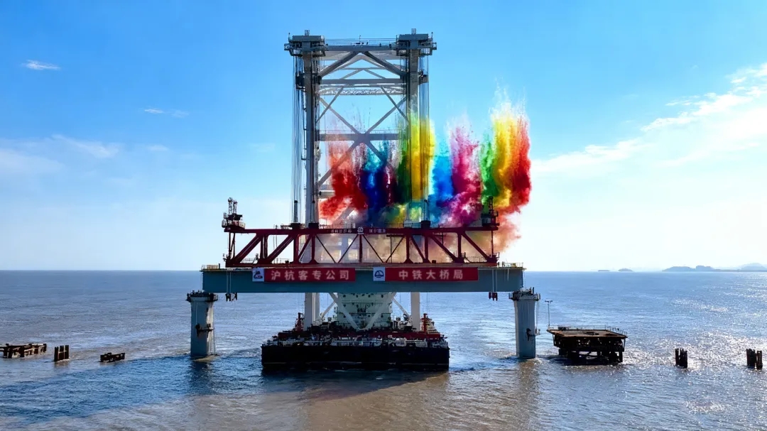 2800吨“天下梁王”!巨力索具助力杭州湾跨海铁路大桥首孔80米箱梁架设到位