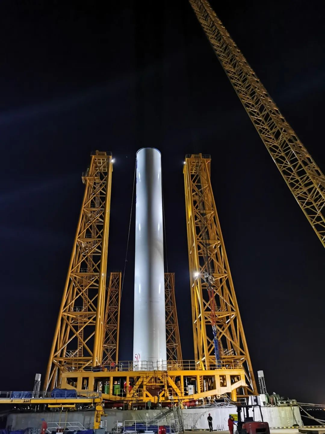 华能山东半岛南4号海上风电名目,风机全体最大分量为650吨,该吊装装备包含运输底座、井字架、均衡梁、电气体系、液压体系、缓冲体系等部件组成,是巨力索具在南方内地地域海上风电首个风机全体吊装名目。这次吊装难度大,功课地区风大、浪高、水深达30米,巨力索具及各参建单元协同作战、逆势攻坚。