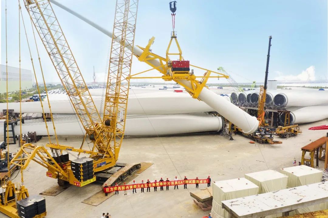 克日,巨力索具为国际某着名风电零件制作商供给的国际首套大兆瓦全角度海上单叶片吊具,顺遂经由进程SAT现场测试,行将发往海上,停止今朝国际最大海上风机叶片装置功课。以后正值中国海上风电“抢装”关头节点,大兆瓦全角度海上单叶片吊具的问世,将助推海上风电名目扶植和成长。