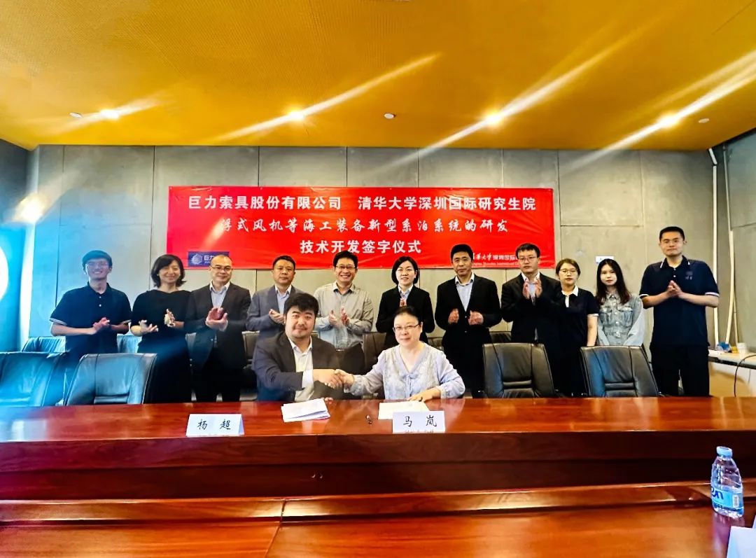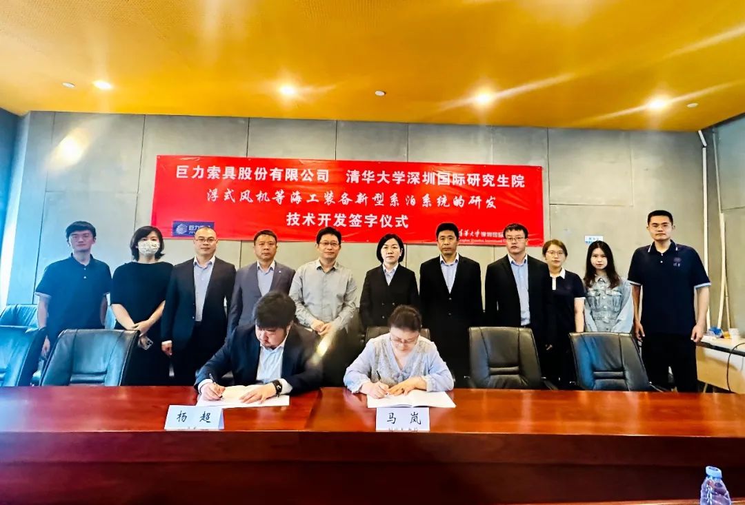 2023年4月13日,巨力索具与清华大学深圳国际研讨生院就浮式风机等海上漂泊式修建物新型系泊体系的研发告竣手艺开辟协作干系并举行签约典礼。