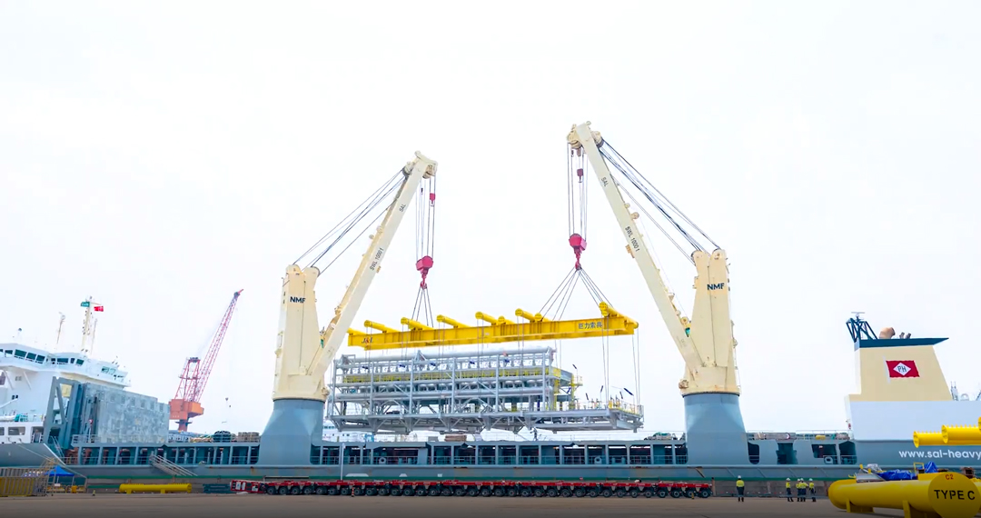 巨力索具首要担任该名目模块的吊装,别离供给了额外载荷为600T、300T、690T的吊框,吊装才能为55T、75T、100T的卸扣及6种差别规格的无讨论绳圈,并供给专业吊装打算,全程保证模块吊装的顺遂停止。